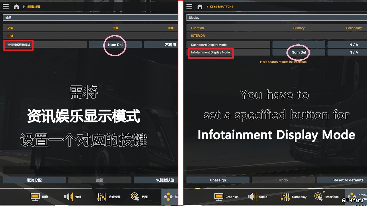 注意:需将资讯娱乐显示模式设置一个对应的按键。