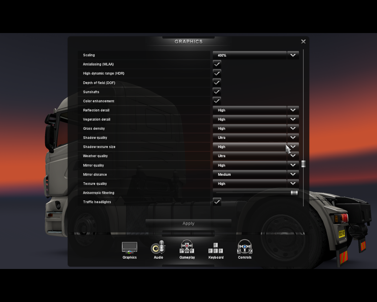 用記事本開Euro Truck Simulator 2config.cfg把uset r_scale_y "1.25"的 "1.25"改"4.00"