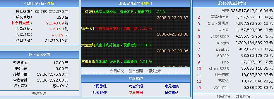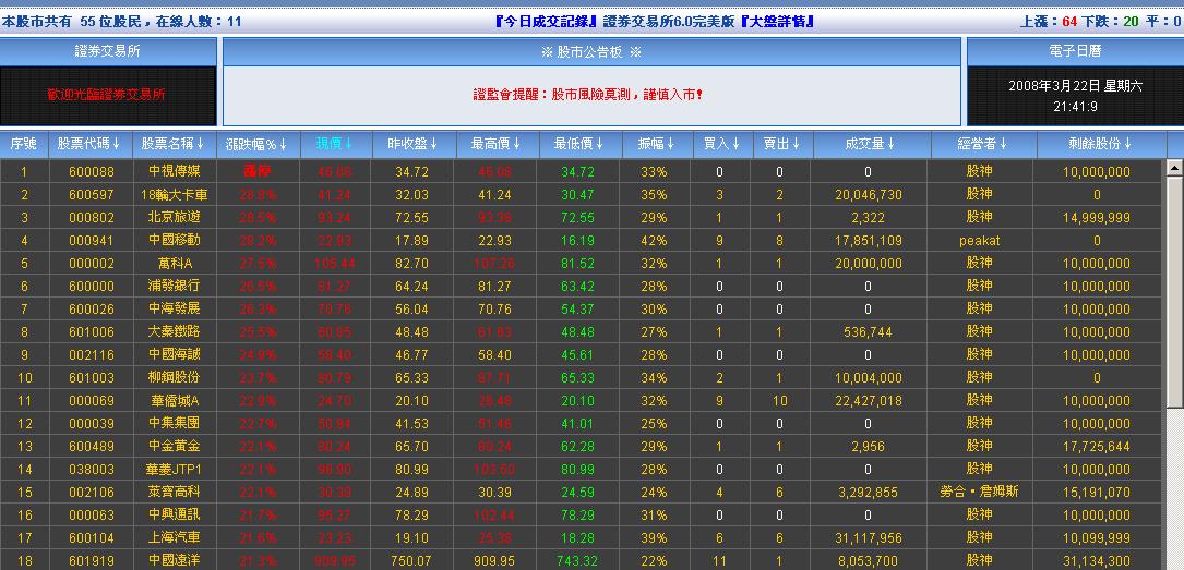 欢迎来到入市指南,下面由我带领大家熟悉我们论坛中的一个重要部分,证券交易所。证券交易所是我们论坛中一个重要的金融机构,我们可以在发帖,工作,游戏之余在这里虚拟炒股,虚拟股市中的资产可以和论坛的货币进行兑换,形成一个整体的货币循环体系~