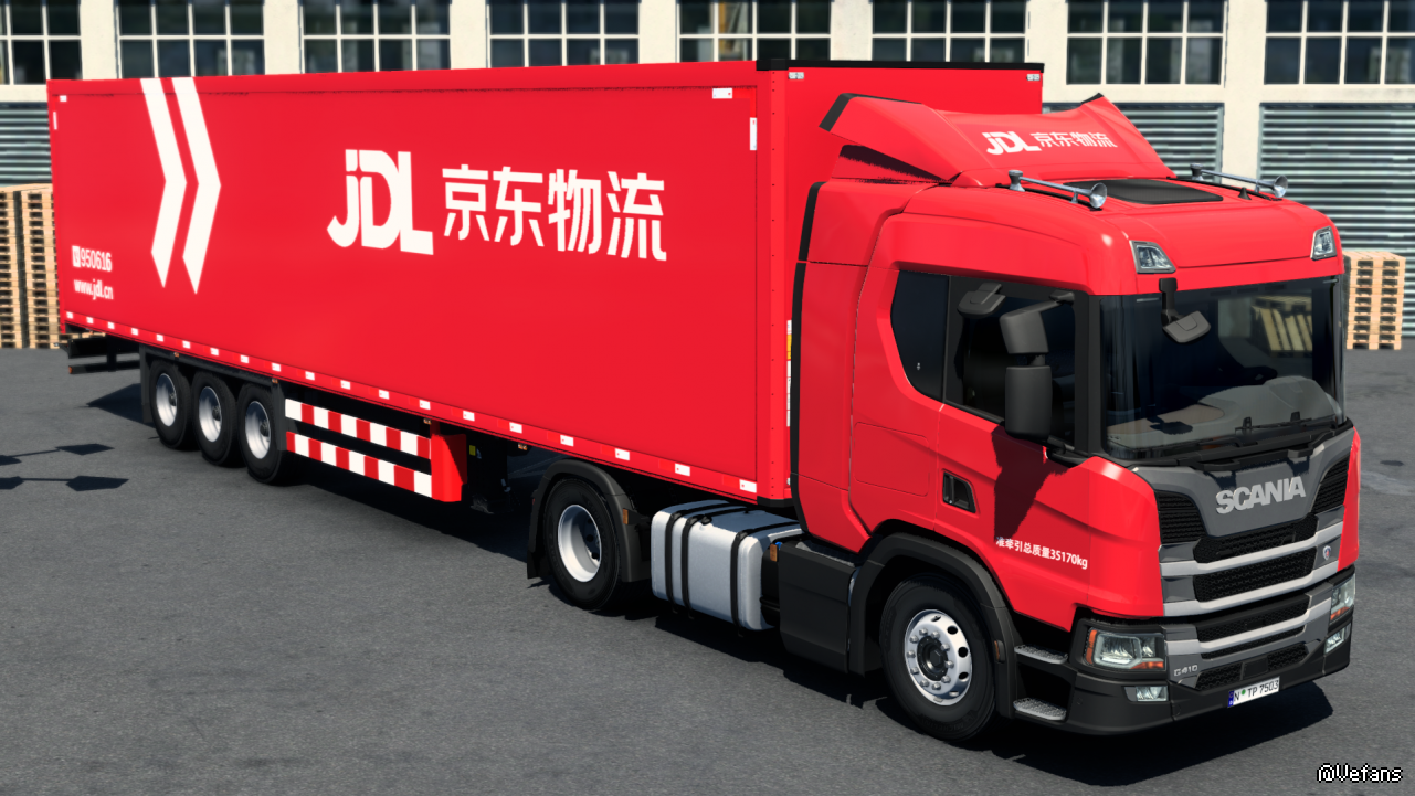 介绍:京东物流涂装包,兼容卡车VOLVO FM ,SCANIA G ,MAN TG3 TGX ,挂车 S.KO 及 SCS 原版挂车。测试游戏版本:1.49x(注意:1.49x仅为测试涂装时的游戏版本,涂装本身无版本限制,所有版本均可用。)