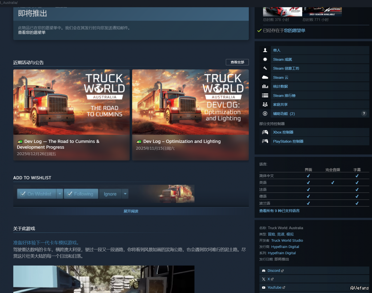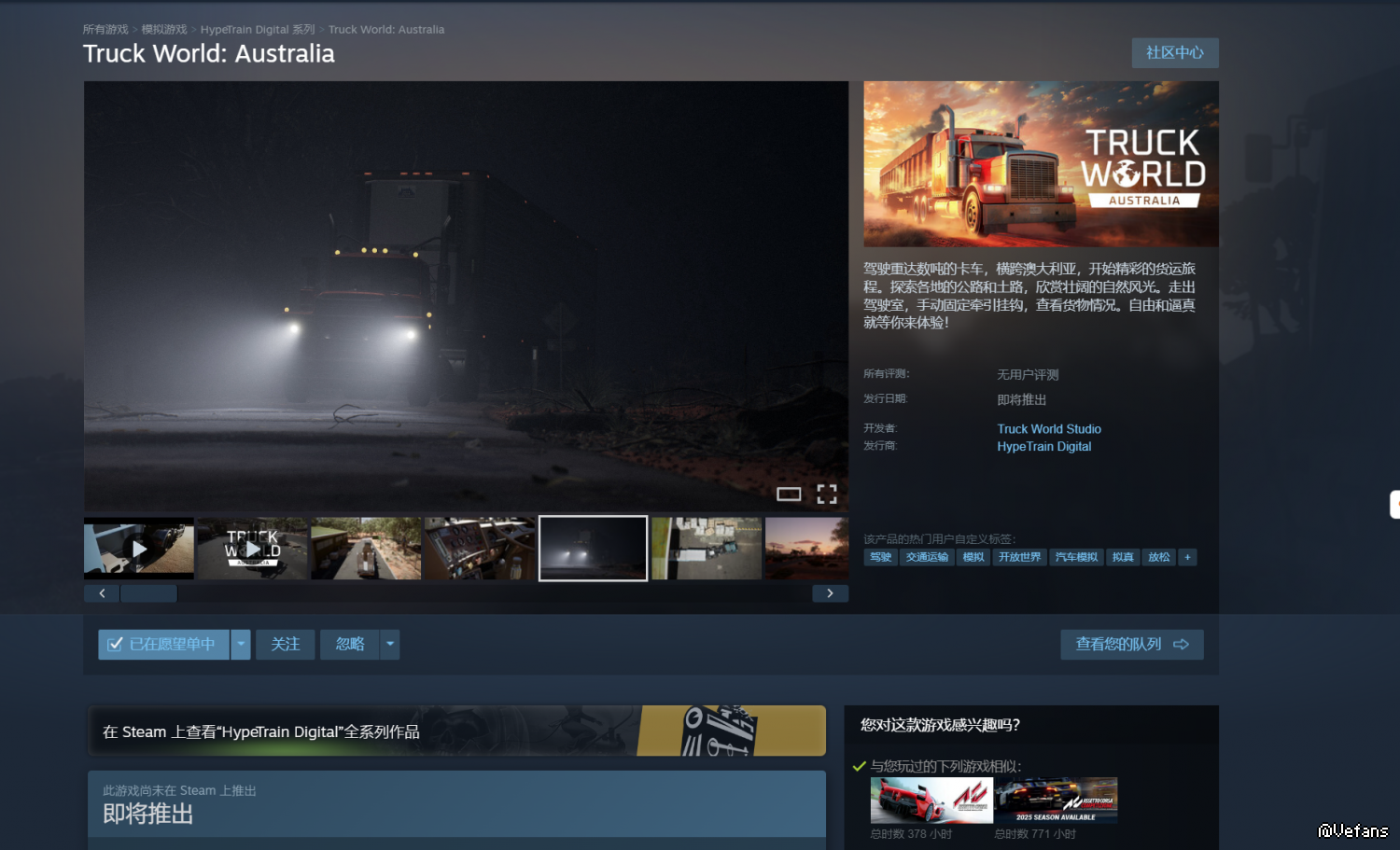 随便搜了下steam 看到这两款。 澳洲那个好像已经TBA很久了 还是在开发 不过好像快了 之前还有款阿拉斯加卡车司机应该有人发过贴了 就不提了