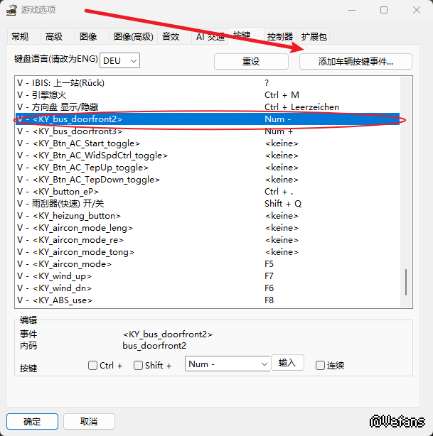 添加车辆按键事件,找到KY_busdoorfront2添加进去,然后给它扔个快捷键就行