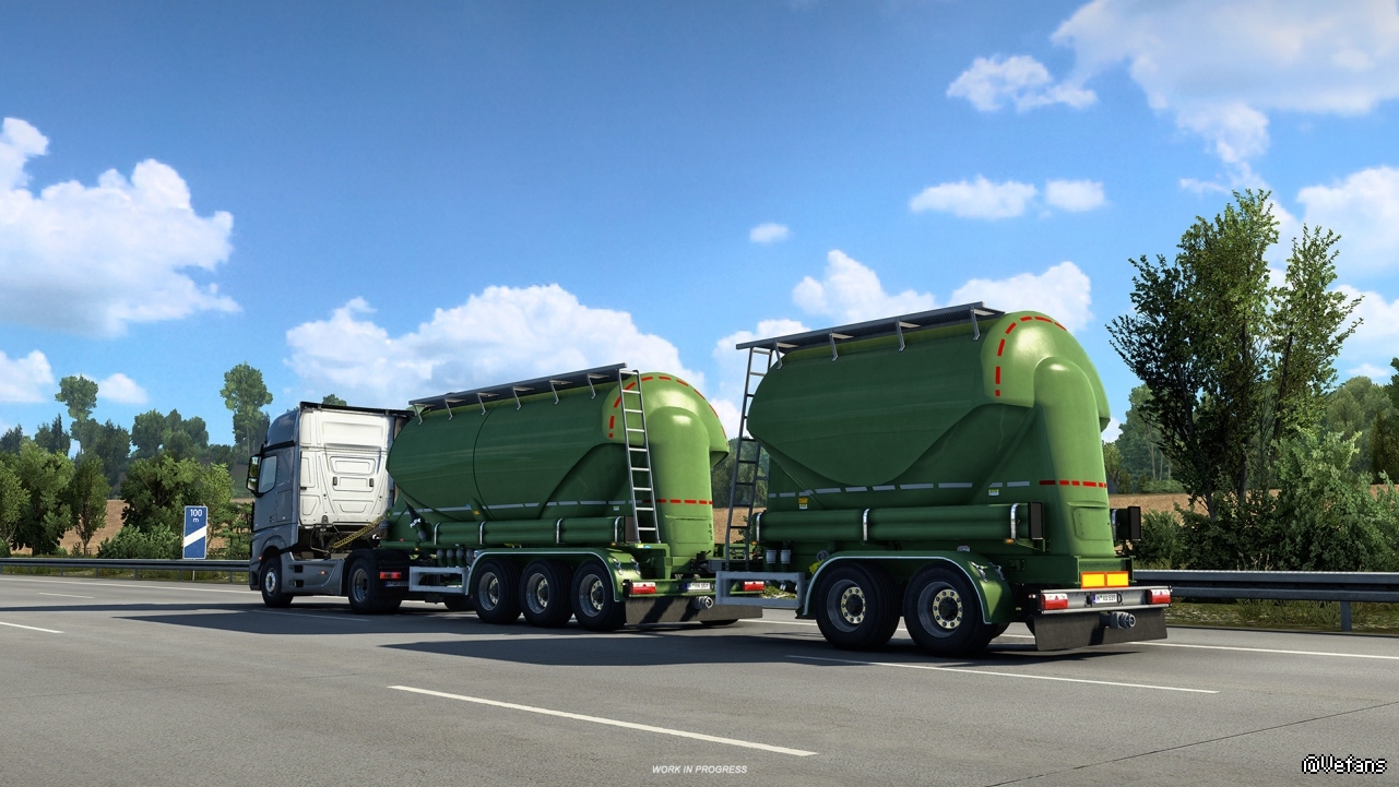 目前,我们将在游戏中加入两种不同类型的蓄水池拖车--燃料蓄水池和筒仓(干散货拖车)。这两种类型将有不同的定制和使用。别担心,我们计划在未来为您带来更多版本的挂车。