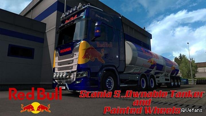 RedBull Energy Drink Combo,so this combo is for the ScS Scania S and the Can Tanker Trailer V1.0,you also get Painted Wheels with the RedBull logo on them.