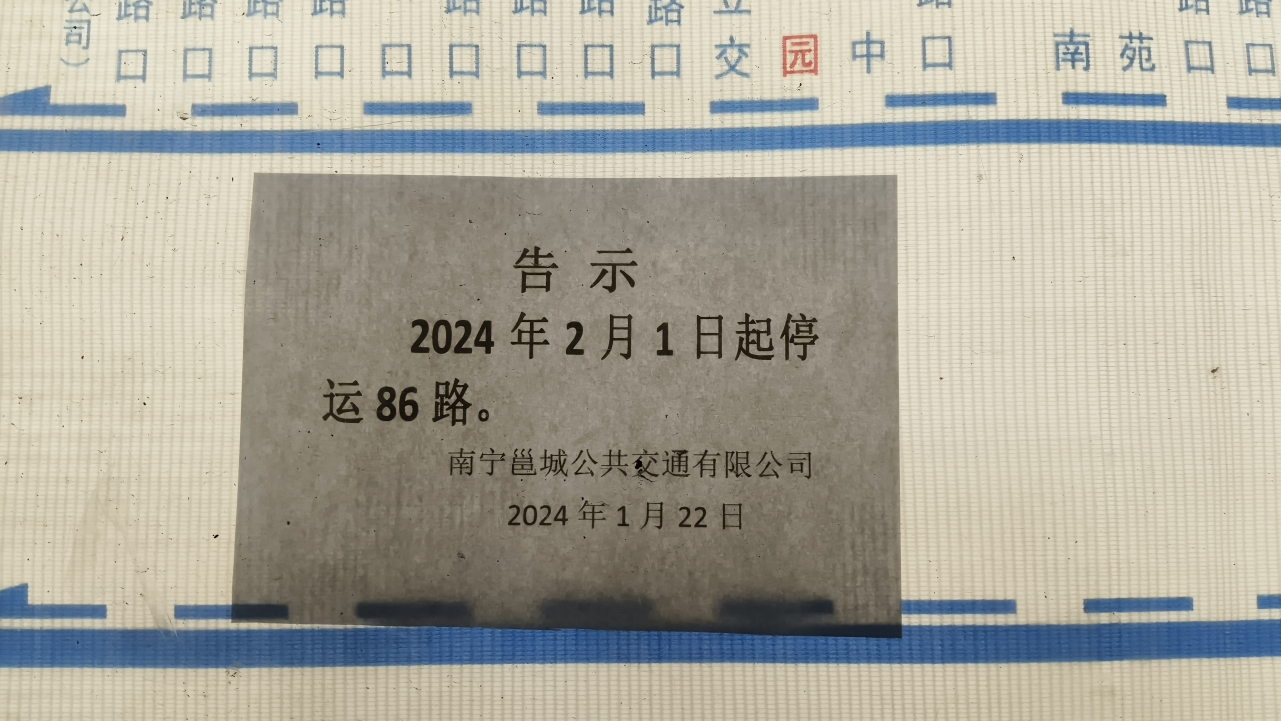 2024年2月1日起 南宁邕城公交公司将停运86路