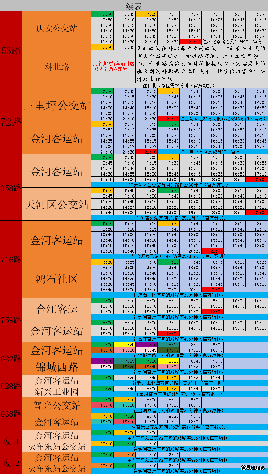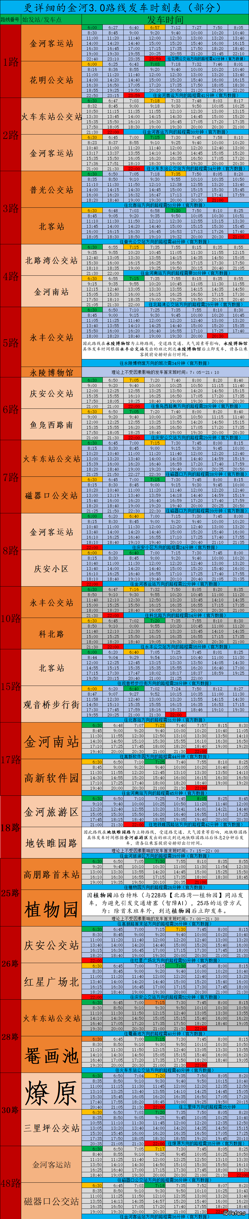 图片(表格仅展示部分路线详细的发车时刻表,并不是只改了涉及下表的路线):