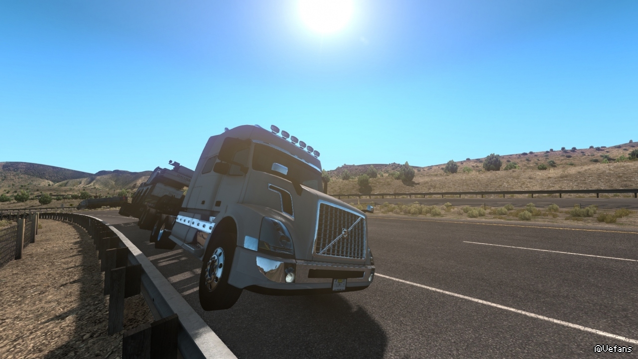 130多km/h,美卡车辆稳定性挺好,一般的高速公路弯道120-130km/h不翻车。beam ng就很容易翻车