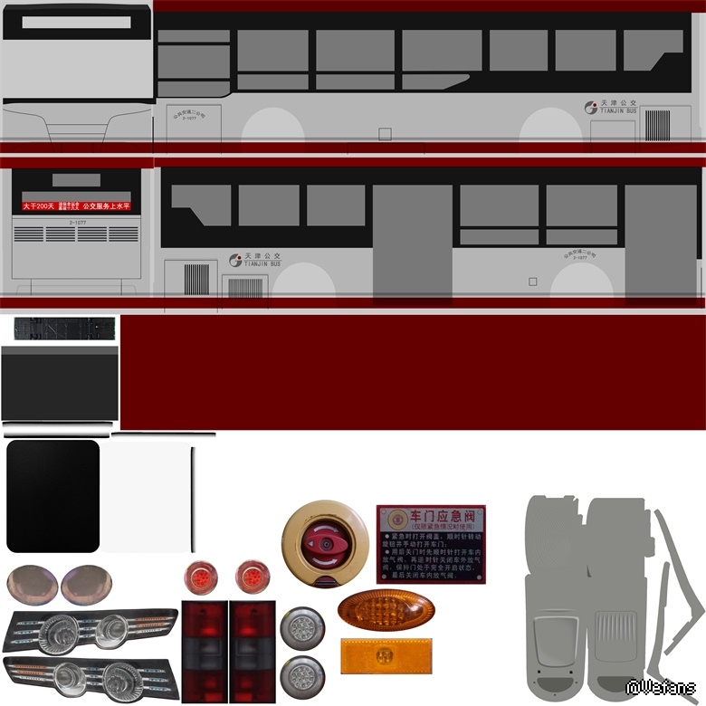 本涂装根据现版天津公交涂料制作。车编号来自公交92路。