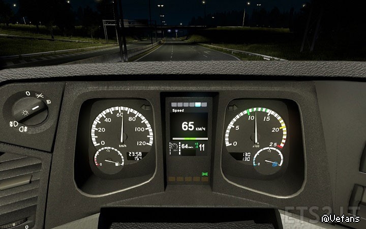 基於SCS原版梅賽德斯賓士新款ACTROS儀表板顯示屏進行修改而成,調整了顯示屏色彩并增加部分無作用圖案以讓儀表板行車電腦顯示屏更加真實。