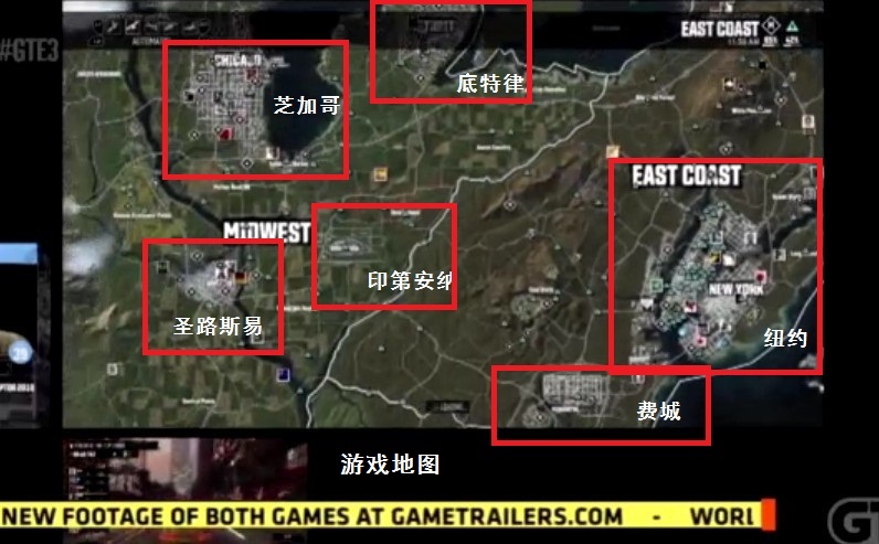 城市规模:游戏中会有15-16个城市,其中6个城市的规模和GTA4大小差不多(洛杉矶、纽约、芝加哥、华盛顿、底特律、迈阿密)
