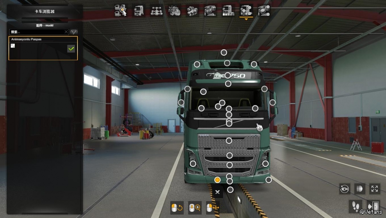 【介绍】:为沃尔沃FH16 2012增加两个独立的动画挡泥板配件,配件需要自己在改装店增加!