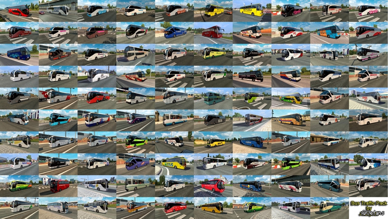 Pack adds in traffic 42 new models of buses with 1188 skins (Setra, Neoplan, Volvo, Man, Mercedes-Benz, Ikarus, Scania, Ayats, Irizar, Temsa, Irisbus, Jelcz, Karosa, Caetano, Optare).