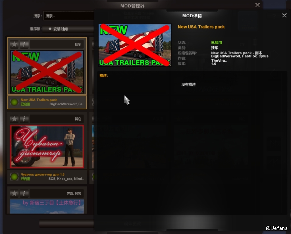其他文件不动,只修改贴图后压缩zip再改成scs,放回mod文件夹中,在游戏中却不生效了。货柜又回到了游戏原版状态。