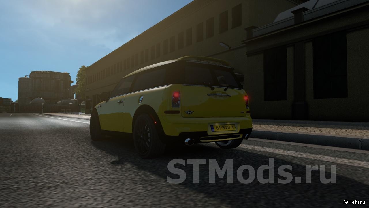 Мод Mini Clubman версия 1.1.1 для Euro Truck Simulator 2 (v1.35.x)АвтономныйПродаётся в MercedesСвой интерьерСвои колёсаЗвукЛайтмаскаЗадний противотуманный свет (активировать с помощью «o»)Шаблон для скинов