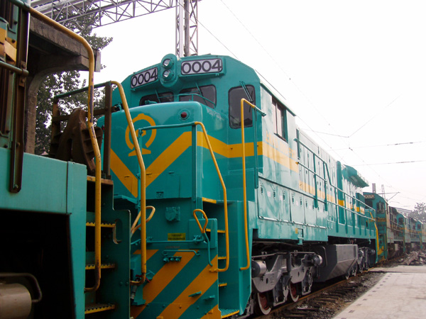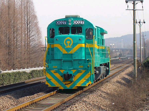 ND5 干线货运机车,偶尔也客串一下拉拉绿皮。全车设计非常人性化,有冰箱,厕所。后来在国内慢慢的都拆掉了。粉绿色的为I型车。绿的是II型 ]