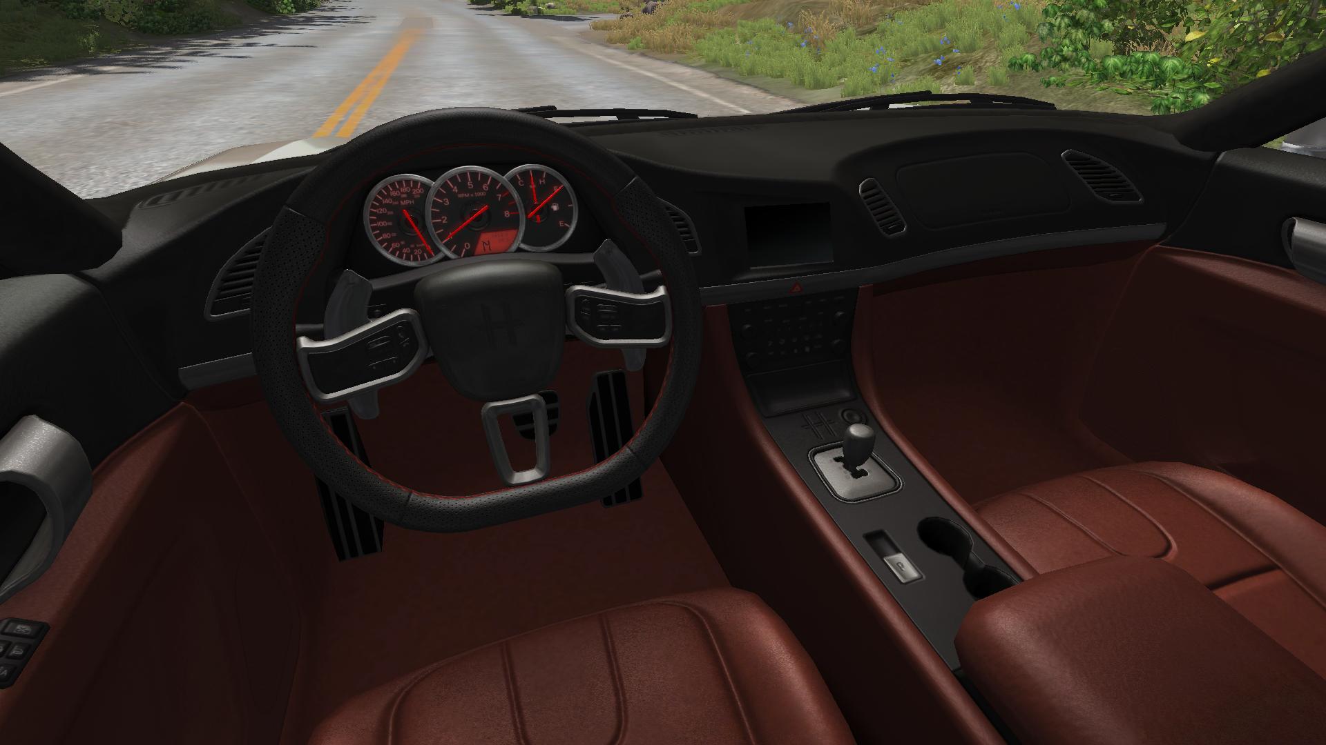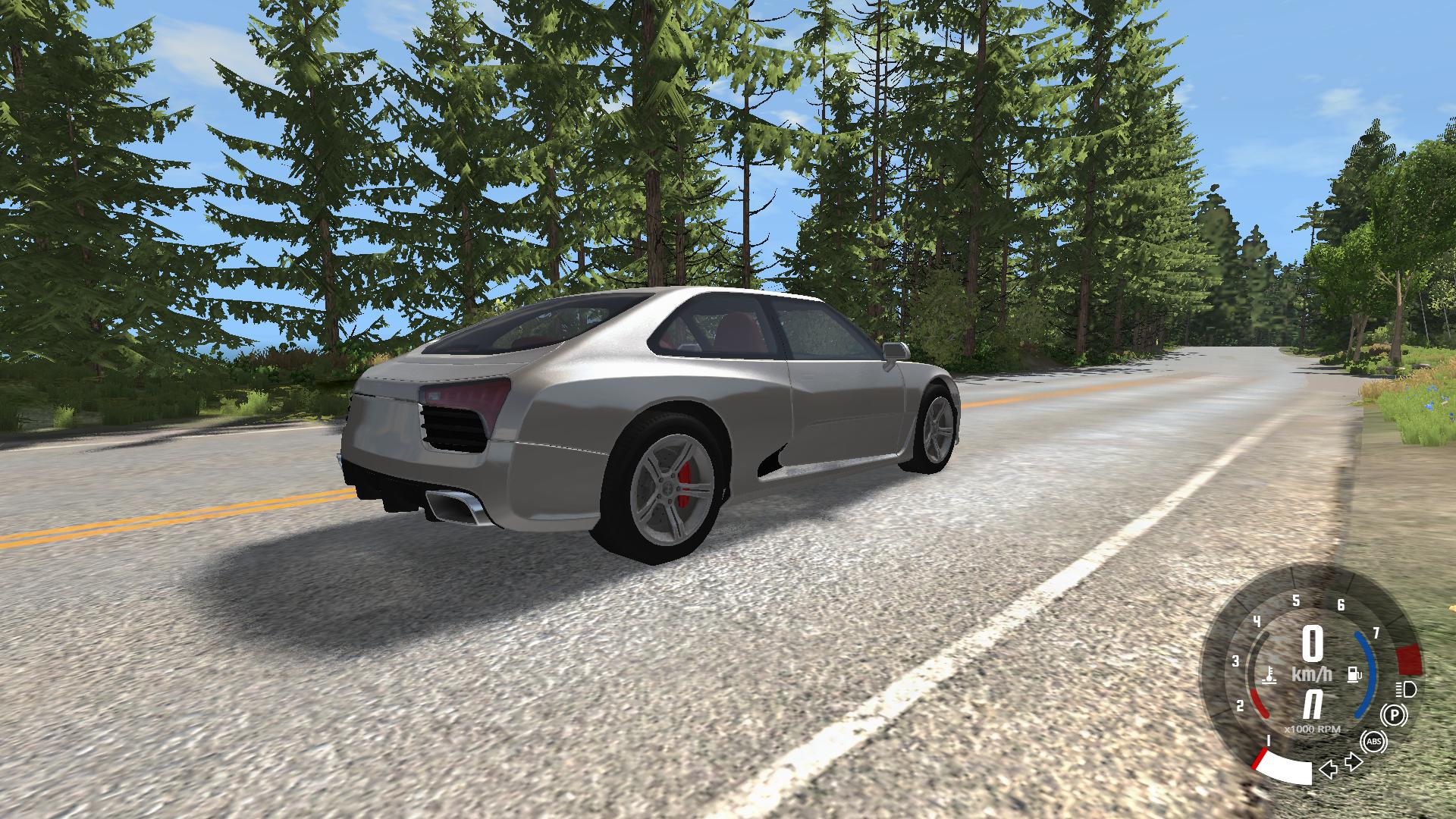 官方新车Hirochi SBR4,目前版本为0.4.2.0.,此车是GTR+R8+Panamera等车的混合。这次使用的是入门版本车,7速双离合手自一体,我选为自动模式。油门响应还算优秀,自动模式下4换5挡到红线区域才换挡。