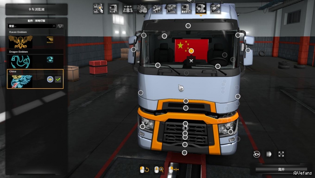 【介绍】:卡车室内中国国旗,独立的模型,兼容格里芬背光灯DLC。