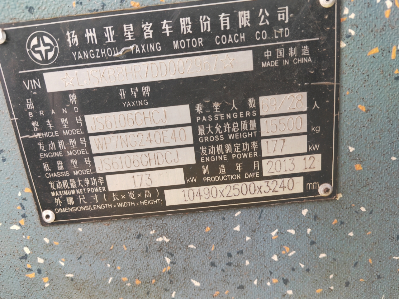 郴州公交即将退役的亚星JS6106GHCJ