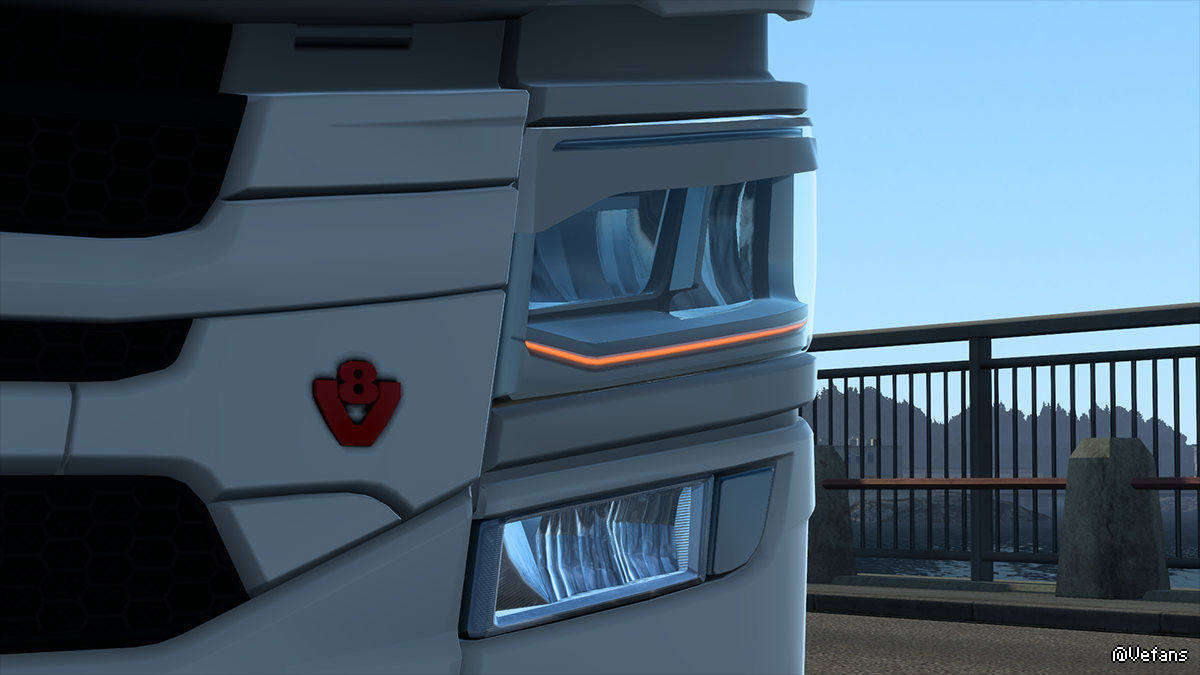 - 全新的发动机声音,完全由我在现实生活中在配备 16.4 l DC16 Euro 6 V8 发动机的 Scania R520 6 系列上录制的声音样本构建而成(与第一款 Scania NextGen 车型中的发动机相同!)