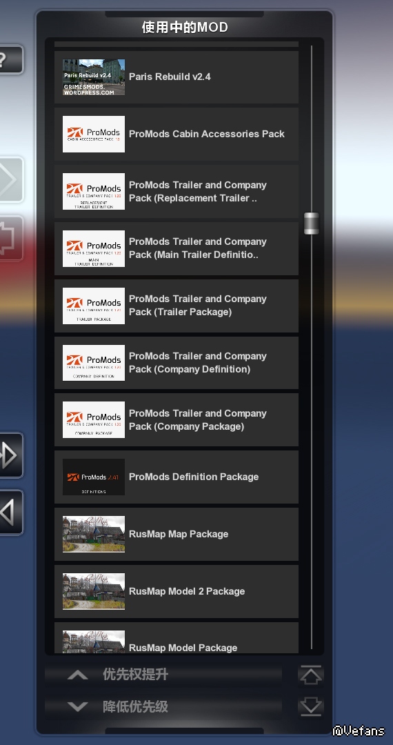 目前想要安装的MOD:promods+promods公司/货柜+俄罗斯开放空间+巴黎重建+柏林重建