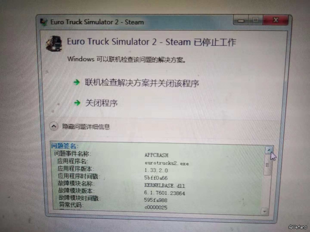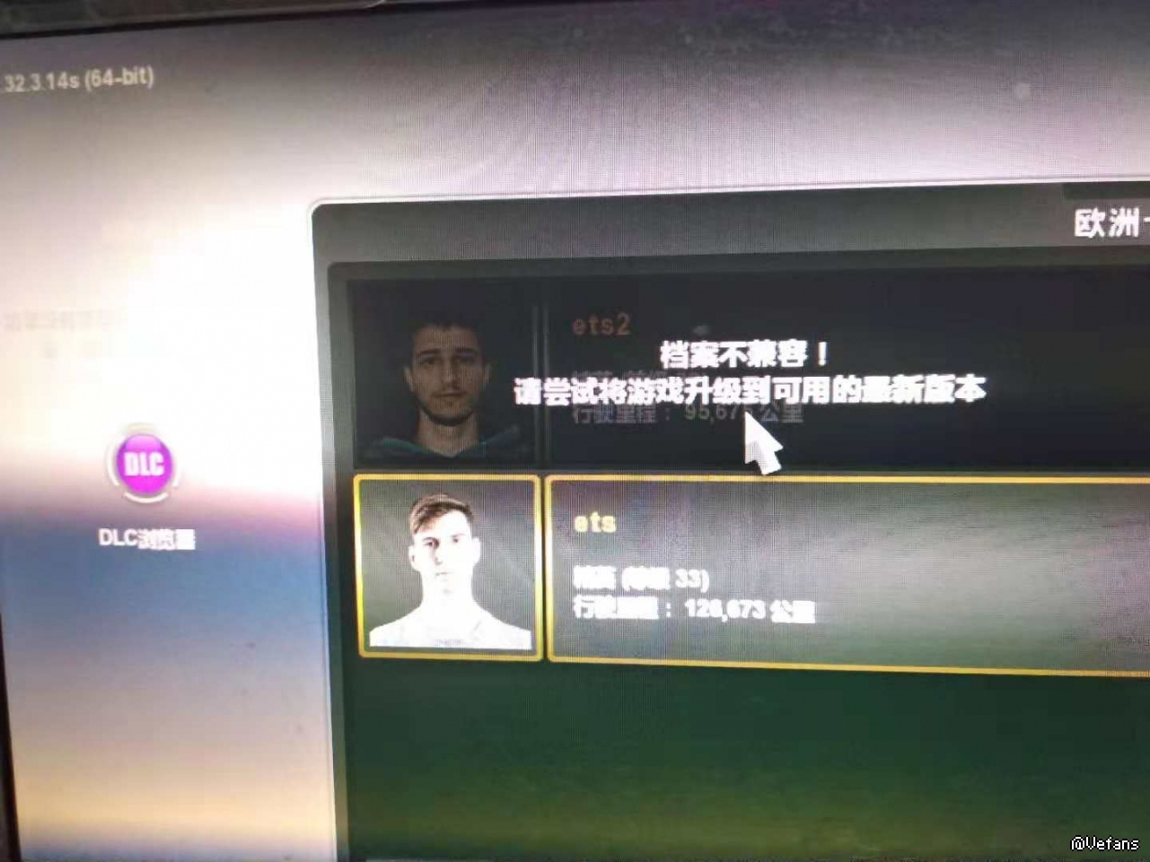 各位好: 之前欧卡2 1.33.1版本出来的时候我下载下来了,我原来的1.32版本里有一个我自己玩的33级的存档,在刚进入1.33版本的时候没有显示存档崩溃,我自己新建了一个新存档想去体验一下1.33版本的内容,发现还没有波罗的海DLC就出来了,后面再进去1.33.1版本就显示Euro Truck Simulator-Steam 已停止工作,我玩的是非STEAM版本的。现在我进我还保留的1.32版本里,那个33级的存档那里显示需要升级到1.33版本,因为版本不兼容,不知道各位大神能否告知这其中是什么情况?现在下了1.33.2版本,波罗的海版本还是现实进不去游戏!