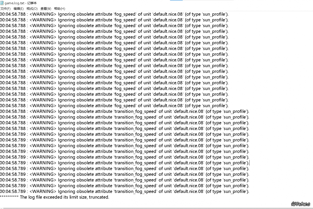 行驶到某一路段闪退,我查看了game.log.txt ,显示错误为日志文件超出其大小限制,被截断。怎么解决?在线等,急!!!