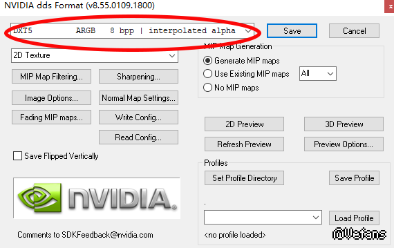 如题,在ps中想导出dds文件时,按照图中的设置导出无法保留原来车窗的半透明效果。请问该如何设置。(ps已安装dds插件)