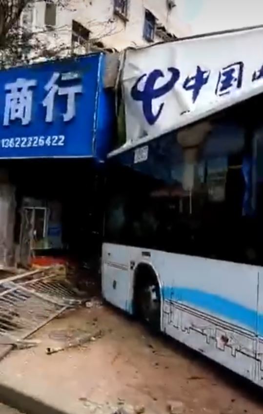 深圳公交车直撞手机店 四人受伤