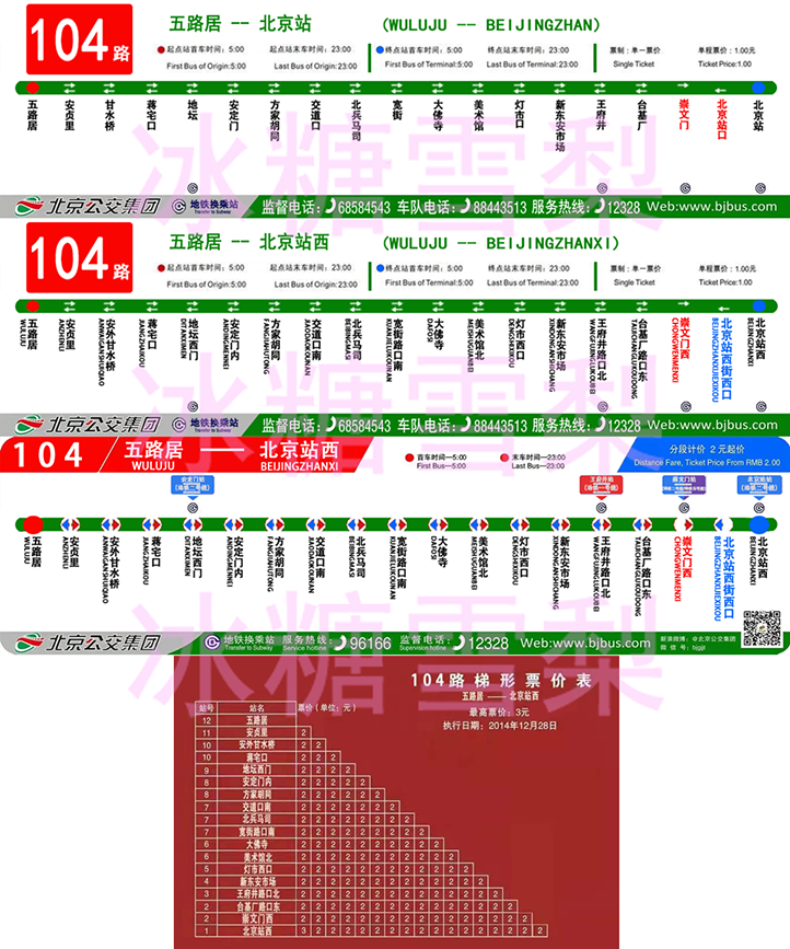【原】北京公交104线路图(新/旧) 票价梯形图