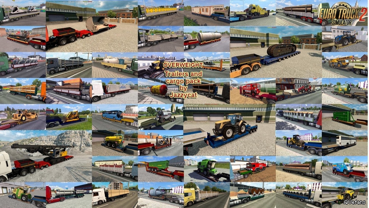 This pack adds in game 53 new models of overweight and flatbed trailers
