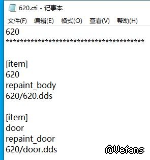 做源正涂装的时候,给车门涂颜色(因为实车有),为了避免直接涂车辆的贴图带来的麻烦,于是就复制了车门贴图文件进涂装文件夹里头,在写cti的时候就不知道怎么写,游戏里车门还是默认的,有没有大佬帮看下该怎么写(顺便丢一张图)