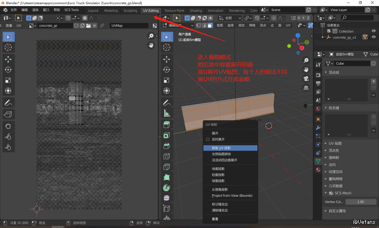 网格伸展到相应的UV