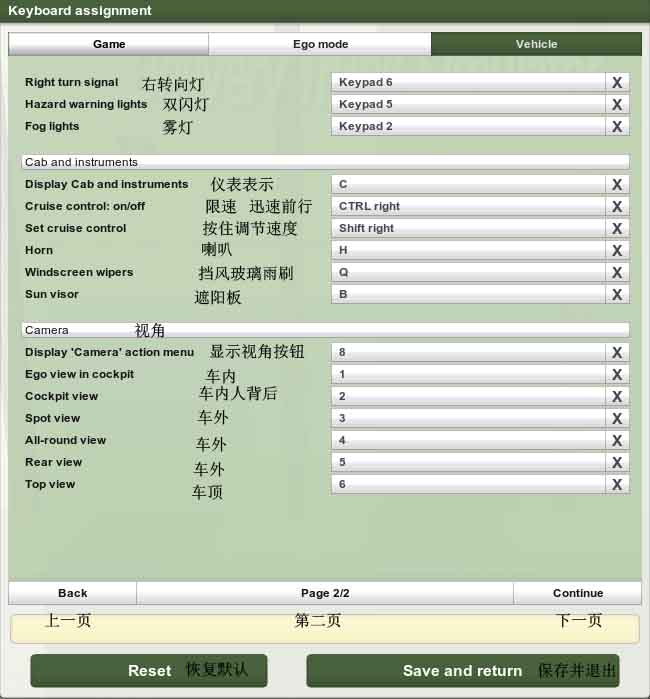 » 《貨運卡車模擬2012》按键设置界面翻译
