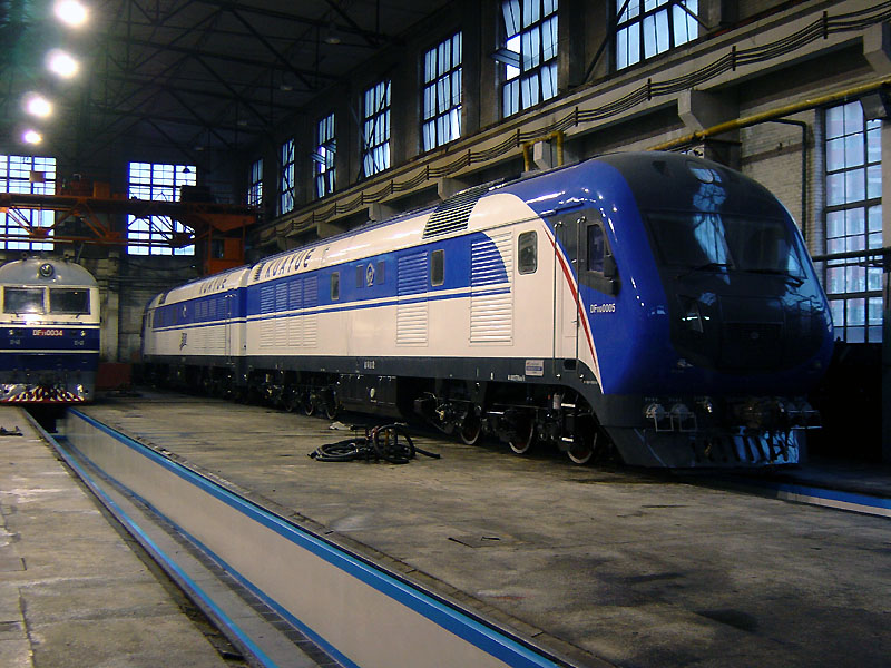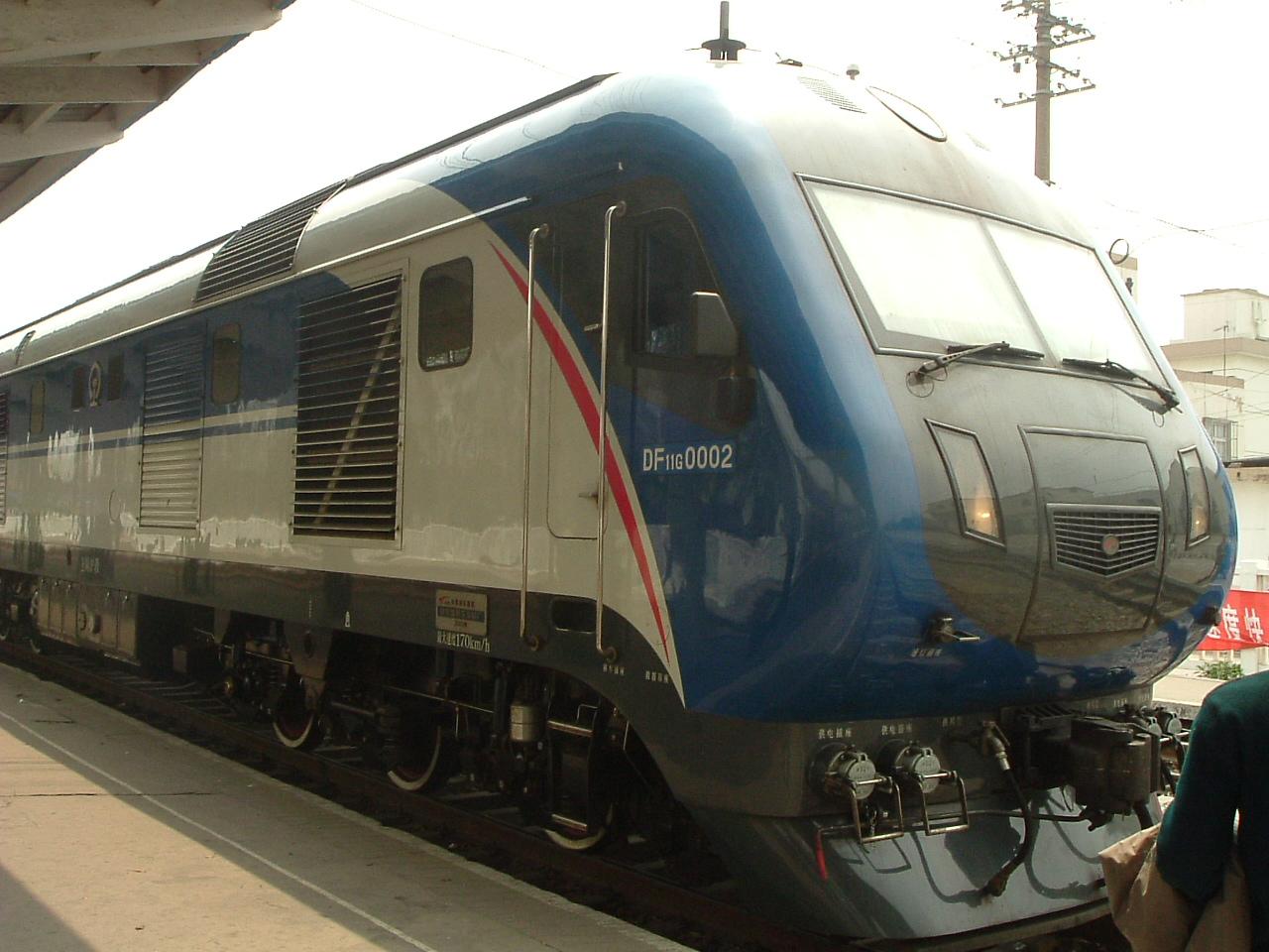 东风11G型内燃机车,代号DF11G,是戚墅堰机车车辆厂(下称戚厂)在响应铁道部关于铁路跨越式发展的口号下,为完成我国铁路第五次大提速而专门研制的双机重联型准高速客运内燃机车。机车装配着16V280ZJA型牵引用主柴油机、JF204D型同步主发电机、ZD106E型牵引电动机、进口的MTU12V183TB12G型供 电用辅助柴油机及LSA47.1L11-4P型发电机。机车整体具有以下一些特点: