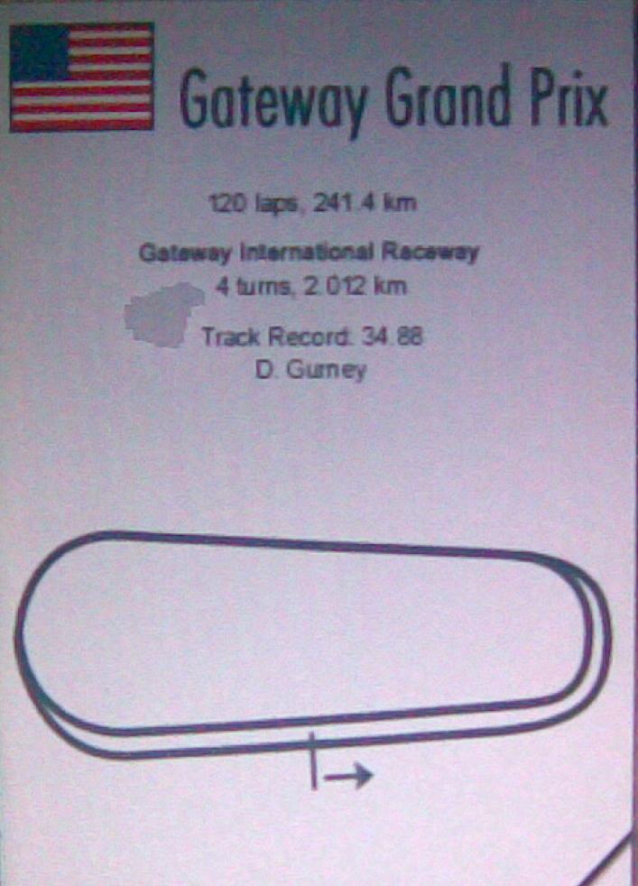 最近玩我家的台式机,玩Grand Prix Legend(没法玩卡车啊......那破32M集显连Hard Truck都带不起来,就等发了成绩换显卡了),今天跑Gateway Int'l Raceway(自己下的Mod),排位赛辛苦跑了个第4,结果......不过20辆车只有2辆完赛,心里倒也很平衡..