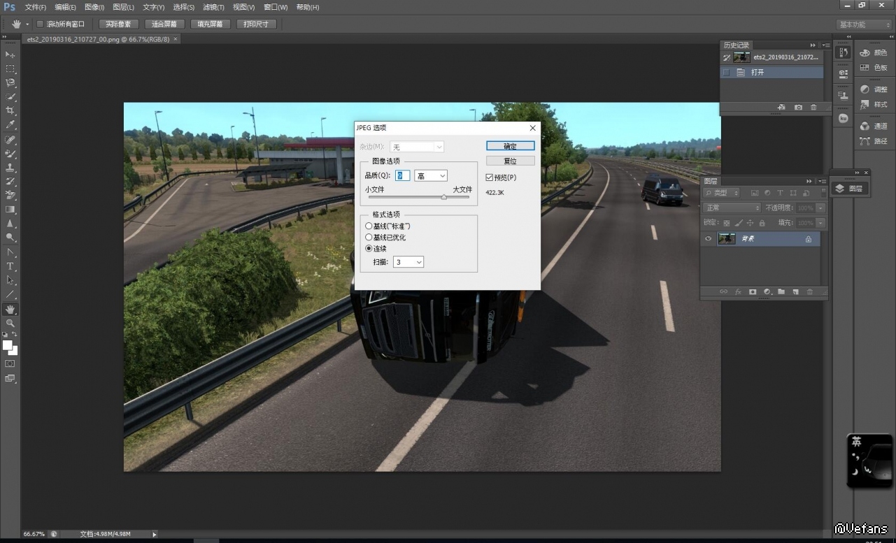 图片储存格式务必选择JPGC,之后它会弹出“JPGC选项”的对话框,这时候就可以修改了