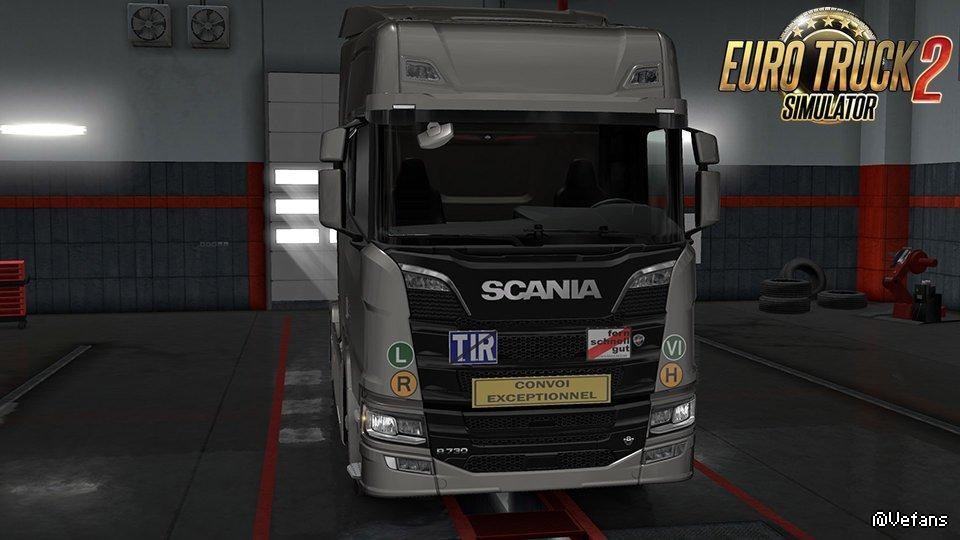 The mod is represented by over 368 signs marking trucks in different categories country codes,