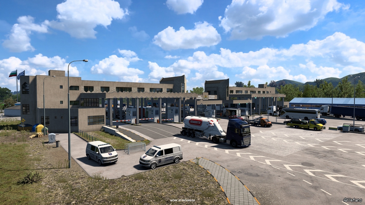 Papers, please! In today's blog, we would like to share some more previews of the border crossings you will encounter on your way in and out of Greece, our upcoming map expansion for Euro Truck Simulator 2. Ready to make the crossing? Let's get moving.