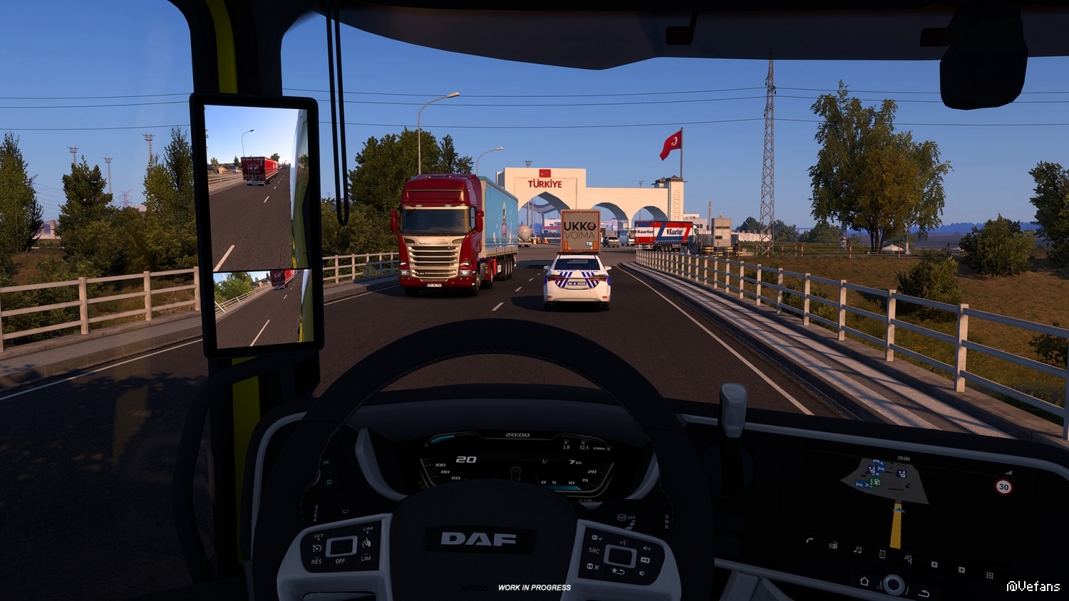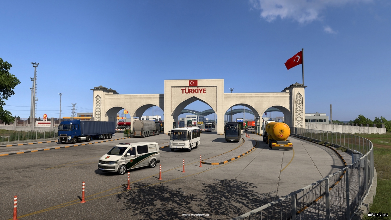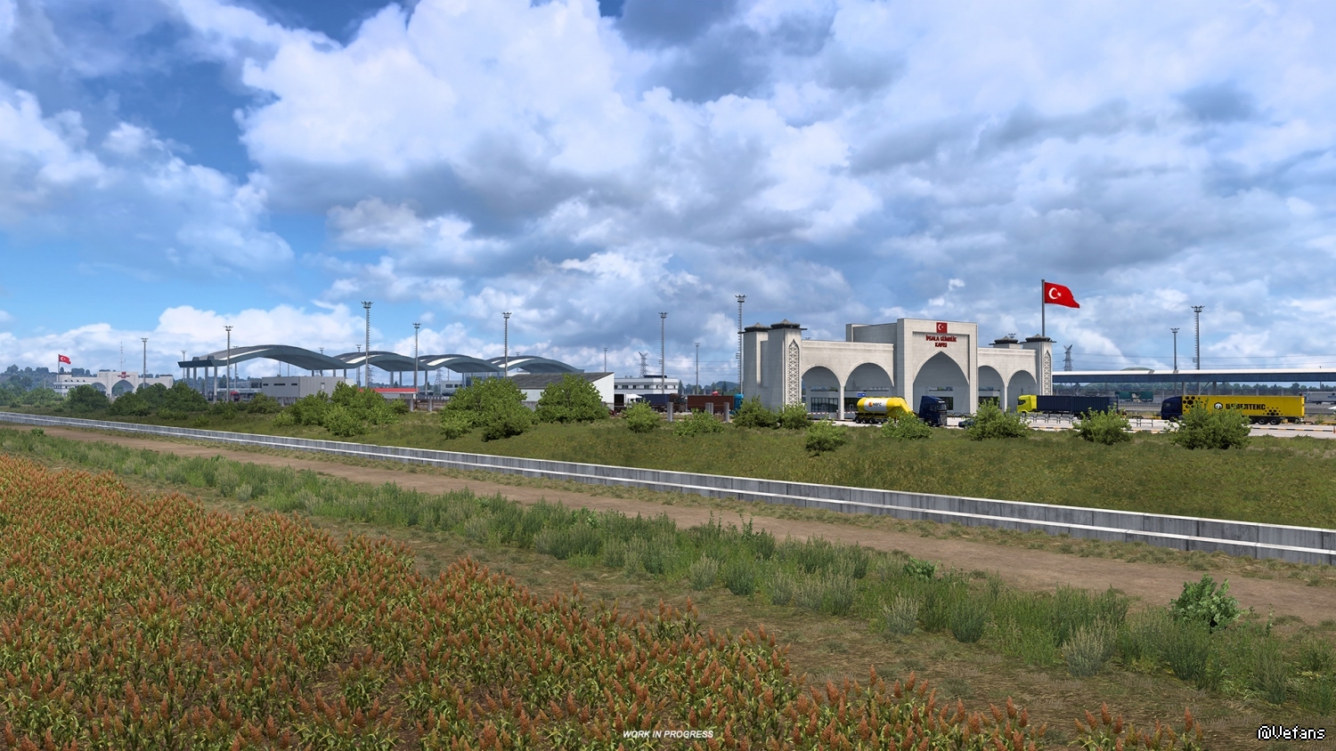 Whilst we don't want to make our players wait for long periods of time in traffic crossing between countries, our team has accurately recreated the crossing area, including the road network and structures built there to handle the busiest crossing points between these two countries.