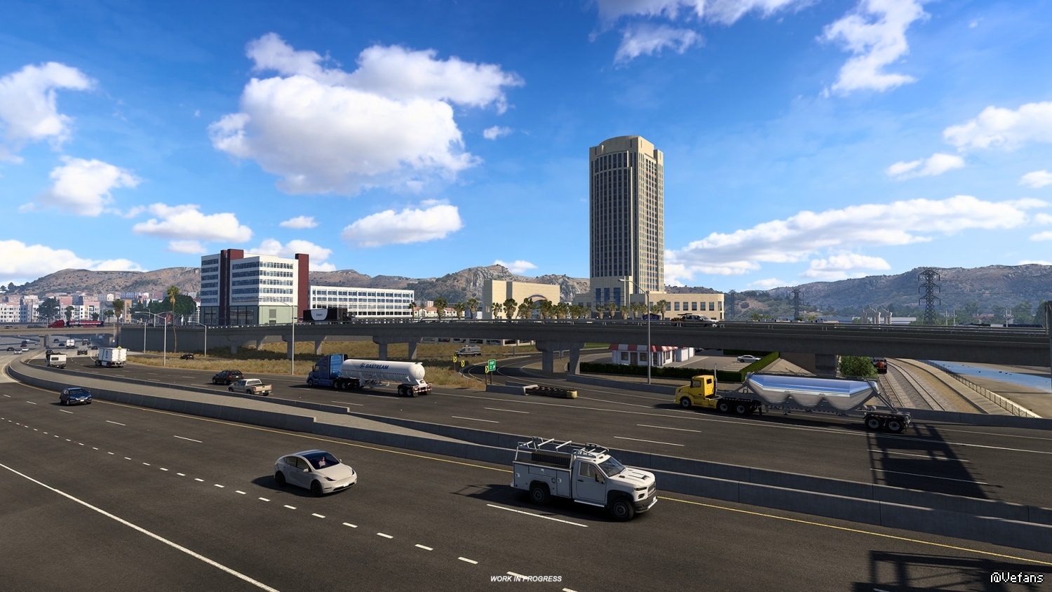 此外,我们还添加了洛杉矶的一些标志性区域,如洛杉矶机场、洛杉矶河、长滩港、美国最繁忙的道路之一 I-405 以及许多其他地方。多亏了我们的资产制作人员和地图设计师的出色工作,卡车司机们才能在重新制作的洛杉矶城市中发现大量的地标性建筑和仓库。