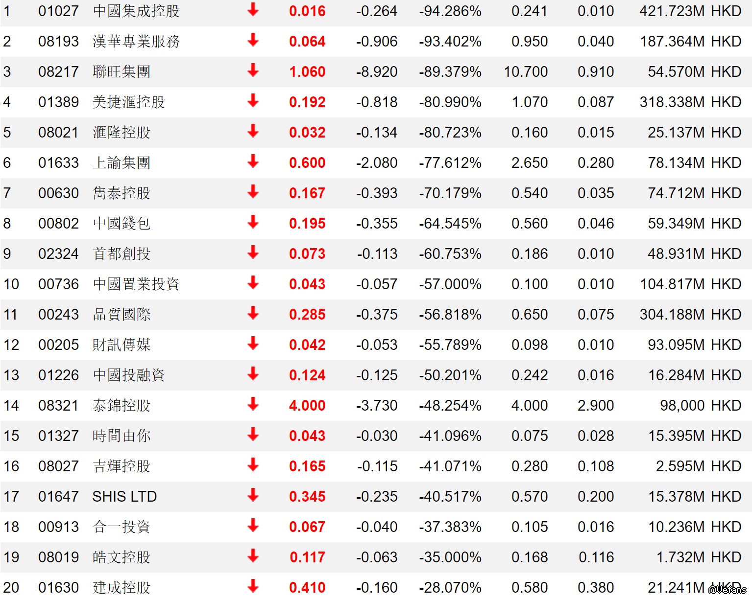 附上今日之20大跌幅圖(etnet)