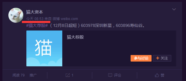 即日起开通【猫大荐股】微博,超短线荐股