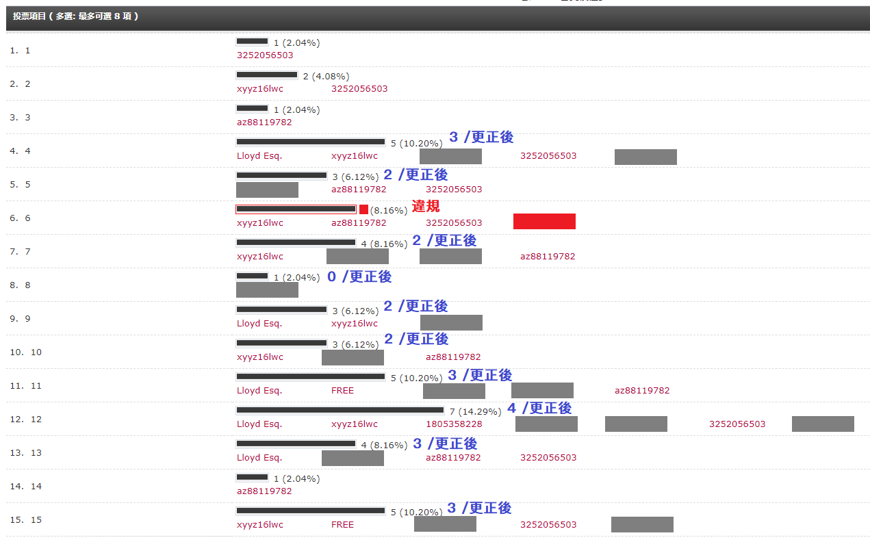 本期存在活動參與者參與投票的違規現象, 最終結果剔除活動參與者的選票, 本次僅警告處理. 其中有一位參與者為其參與作品投票, 取消其參與獎獎勵及本次參與活動資格.