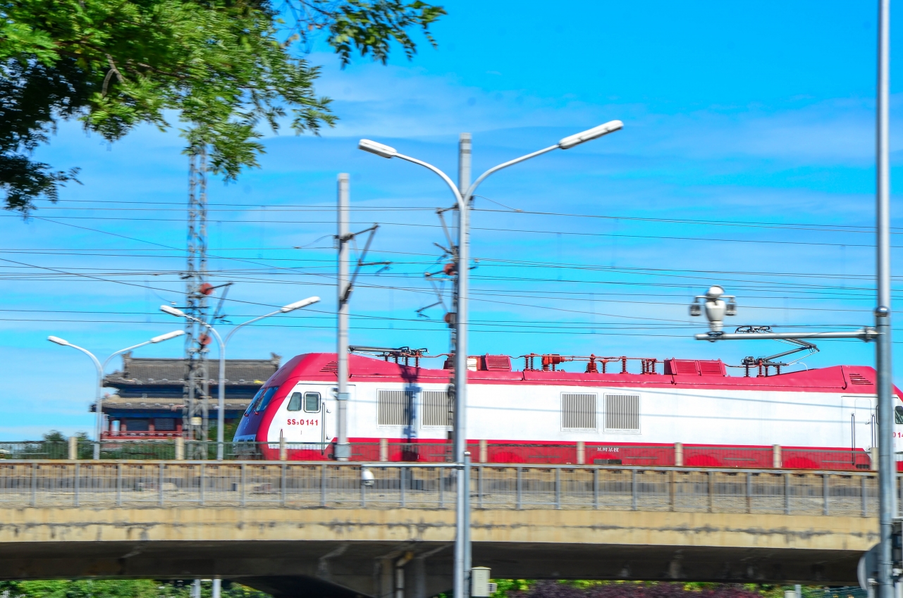 永定门城楼前的SS9电力机车