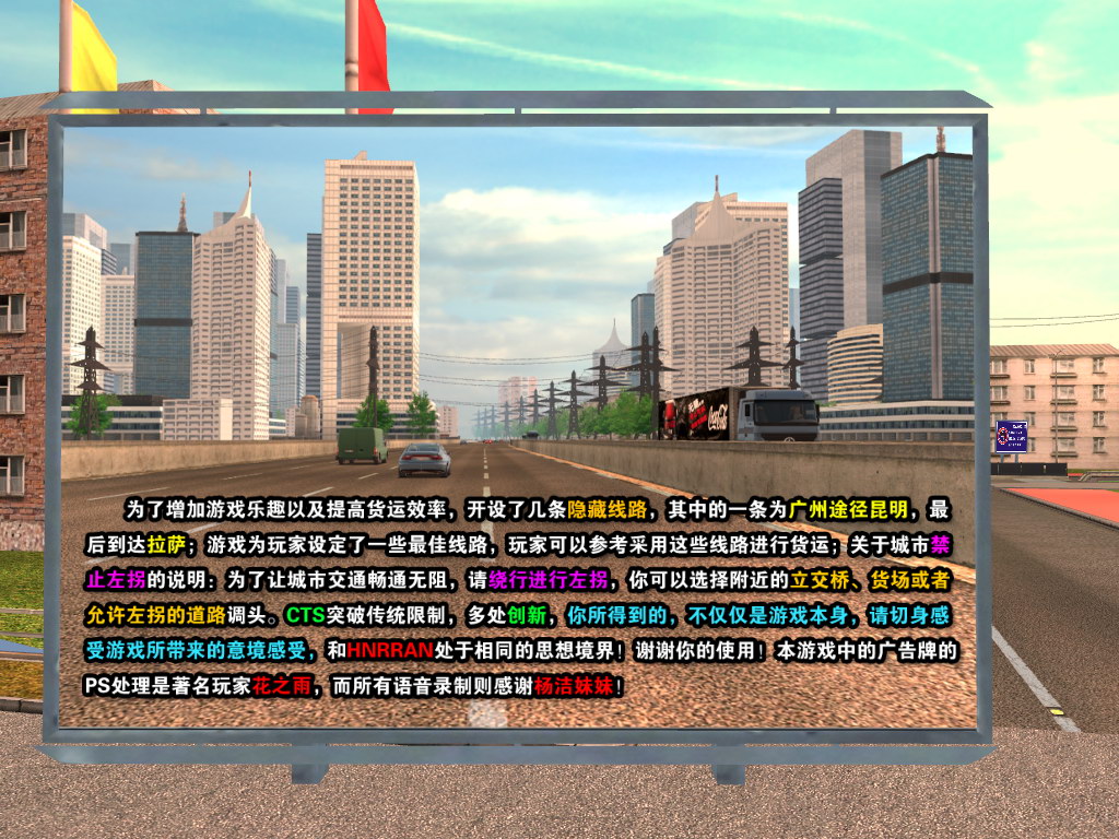今天又更新了,主要是之前说的游戏开始前的说明,已超高清广告牌形式出现,还会有语音播放,这项将会在每个城市起点都有,