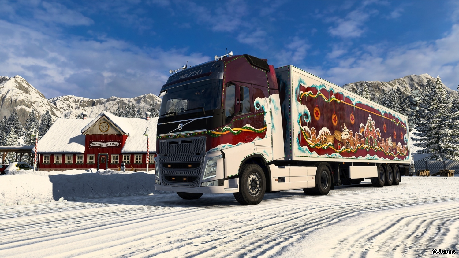 Using External Contracts with a World of Trucks-connected profile in Euro Truck Simulator 2, American Truck Simulator or both, the community is to deliver supplies and gift packs to and from Christmas Winterland using as many cities as possible.