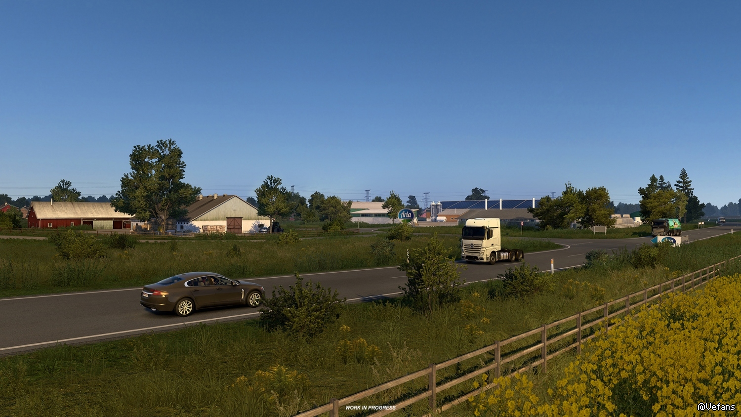 Today, we're delighted to share with you a little more information about a project we have been working on for a while, the Scandinavia DLC Refresh. We have hinted at its existence during our recent Special Christmas 2024 Live Stream, so we thought we may just as well explain what it is all about. The motivation for starting this project was to bring the existing Scandinavia DLC content closer to our current standards, so that when you pass through it on the way to the new region covered by Nordic Horizons DLC, the difference is not too abrupt.