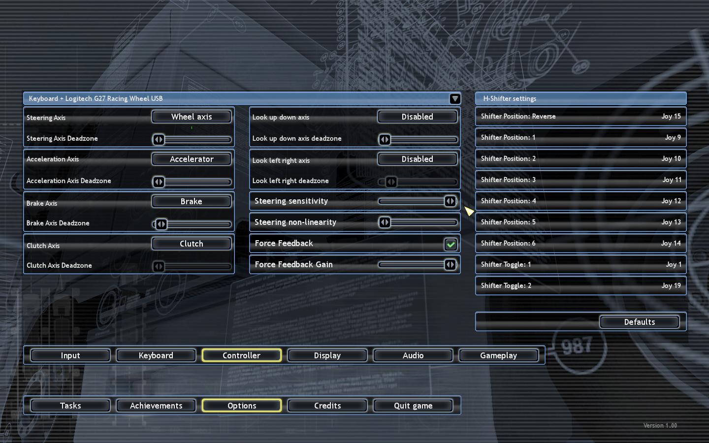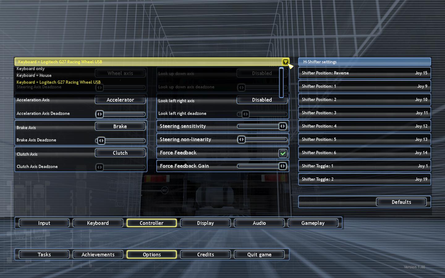 原帖由 5282399700 於 2011-6-18 21:24 發表 如图,首先选择键盘+方向盘的使用方式 然后开始正式设置方向盘,左边4个依次是方向,油门,刹车,离合器以及他们各自的死区。 中间第一个是向上向下看的轴,第二个是向左向右看的轴,一般来说可以不管。第三个是方向盘灵敏度,第四个 ...