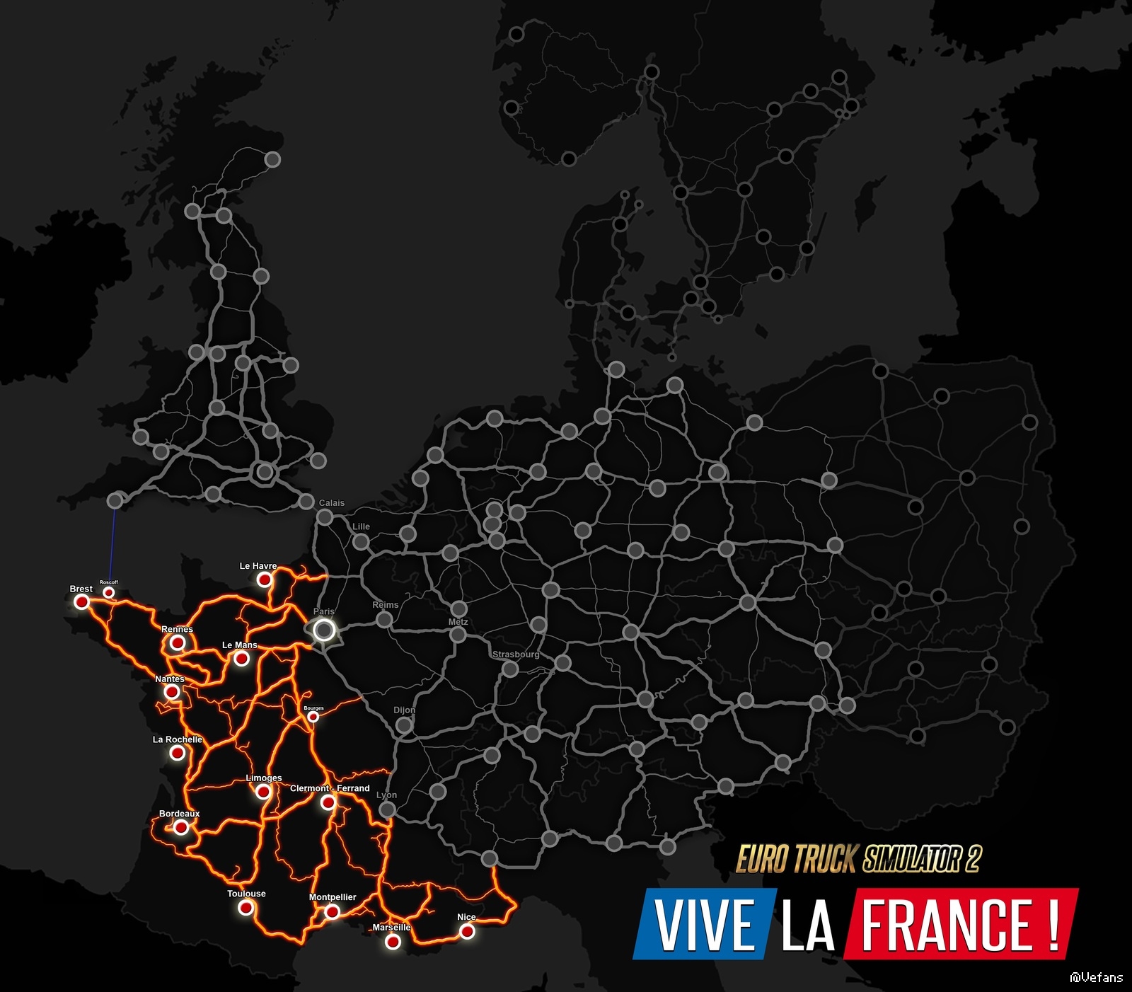 Vive la France ! is a large map expansion add-on for Euro Truck Simulator 2.