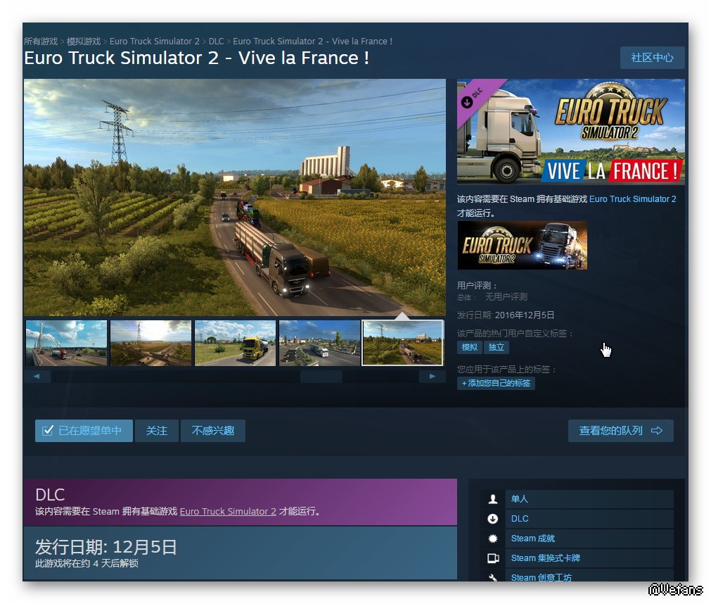 steam上正式发售日期为12月5日